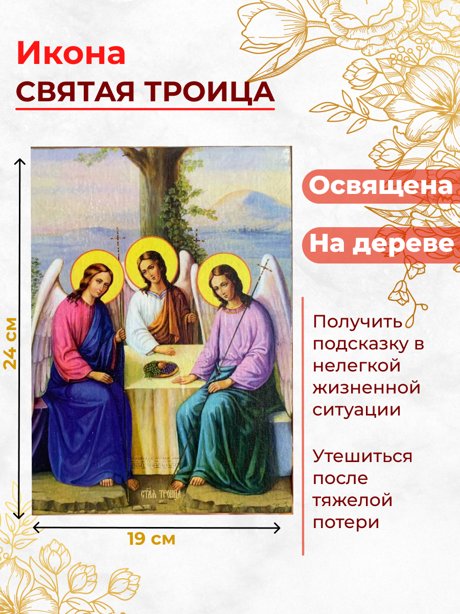 Купить Освященная икона на дереве "Святая Троица" Троица по лучшей цене с доставкой - интернет магазин №1 в России